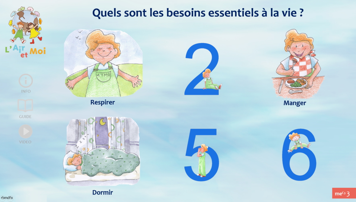 Chaque module L'Air et Moi École se compose d'un diaporama, de son guide pédagogique, de vidéos, de travaux pratiques, d'une fiche exercice de synthèse, d'une fiche récapitulative, d'une fiche quiz, d'une BD et de coloriages.Généralement, le diaporama animé est utilisé comme socle de la séance d’apprentissage et ponctué par les autres outils qui viennent le compléter.