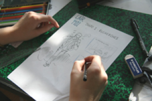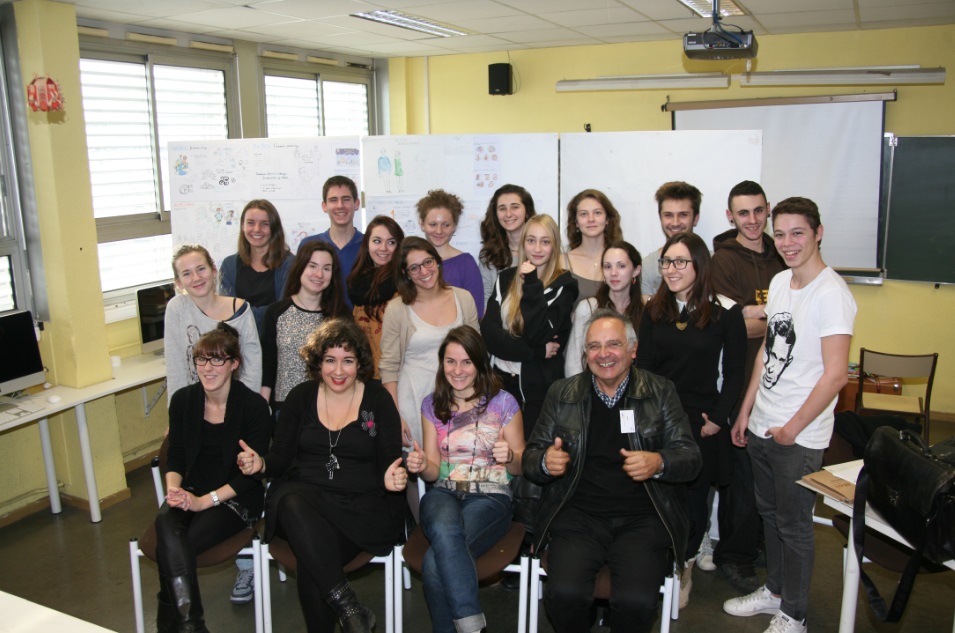 Les élèves de la classe de Mise à Niveau en Arts Appliqués et leurs professeurs ont été nos premiers partenaires. Ensemble, nous avons travaillé sur la partie graphique du projet pour le faire évoluer à l’image des lycéens. Les étudiants ont dessiné des propositions de logos et de personnages, ils ont imaginé une adaptation de contenu des diapositives et de mise en page.