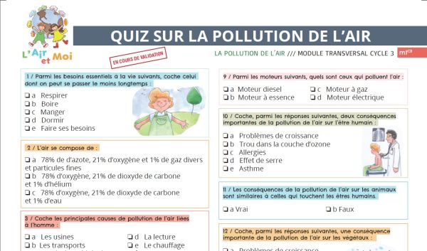 Ce quiz permet de tester ses connaissances sur l’air. C’est une manière ludique d’apprendre et de comprendre l’importance de l’air, les causes, les conséquences et les solutions. Quelques questions piège permettent de prendre conscience d’idées reçues qui continuent de vivre dans l’inconscient collectif. C’est le moment de les enrayer !
