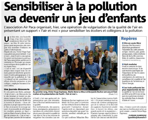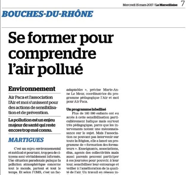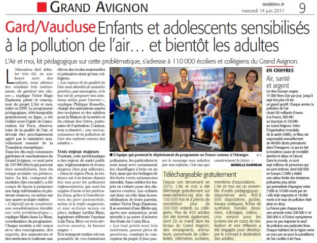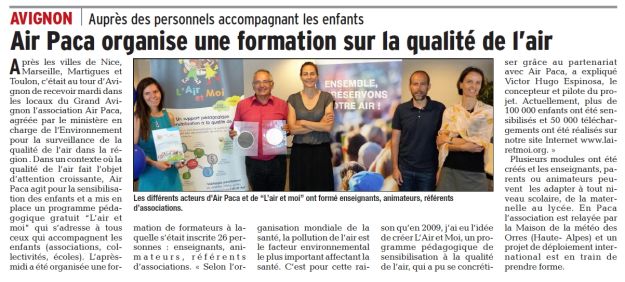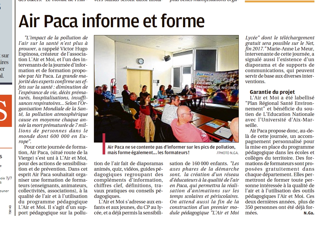 Article paru dans Vaucluse Matin le 17 juin 2017 suite à la formation L’Air et Moi du 13 juin à Avignon