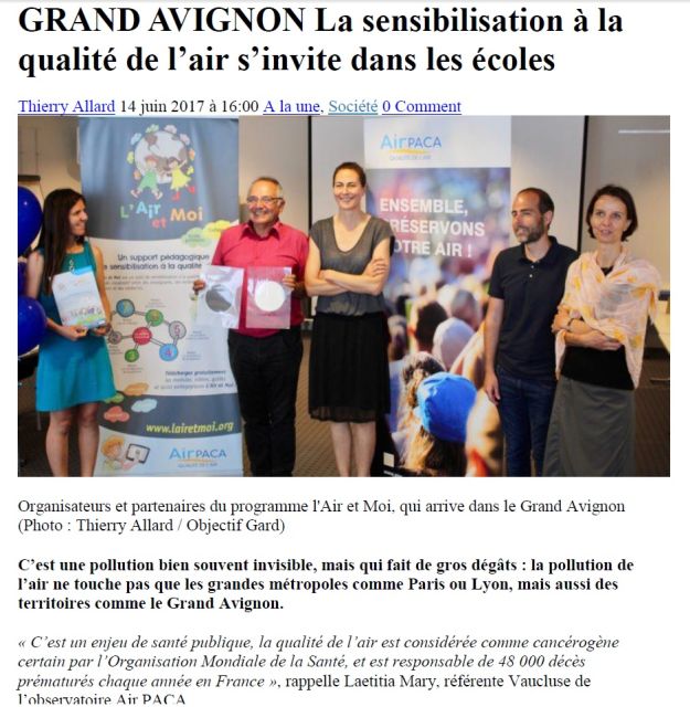 Article paru dans Objectif Gard le 14 juin 2017 suite à la formation L’Air et Moi du 13 juin à Avignon