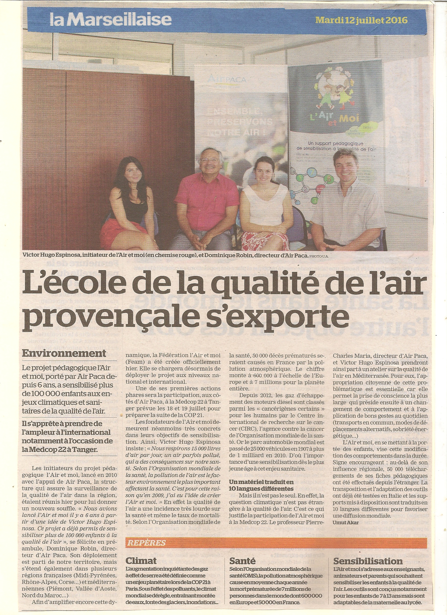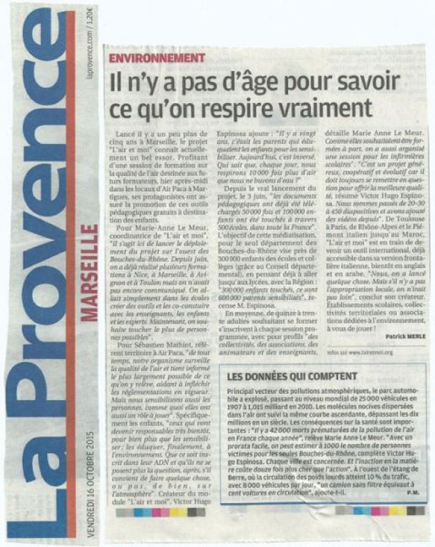 AtmoSud sensibilise à la qualité de l'air à Marseille, 8 novembre 2018 - La Marseillaise