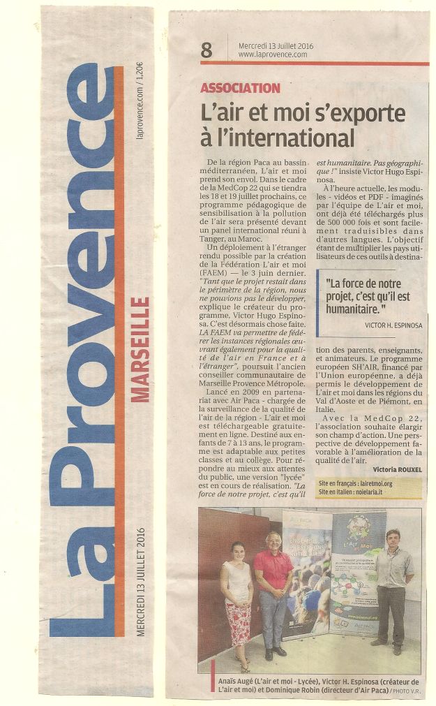 L'Air et Moi dans Vaucluse Matin 09/07/2015