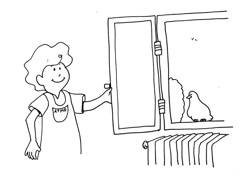 Dessin : Atmo ouvre la fenêtre pour améliorer la qualité de l'air intérieur